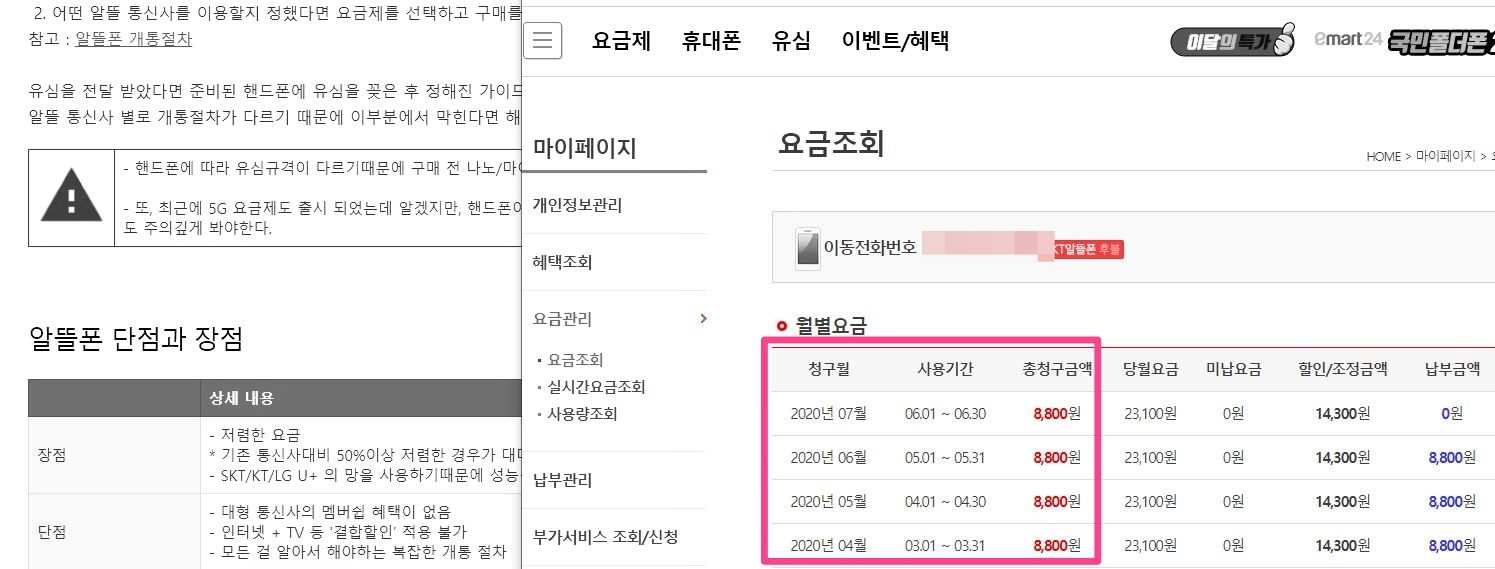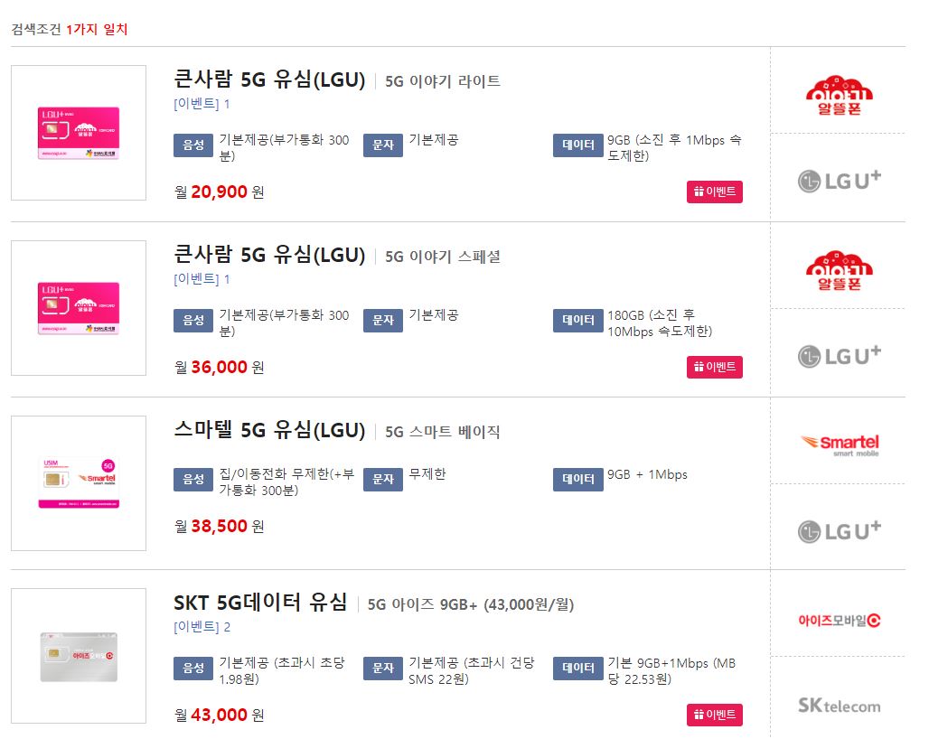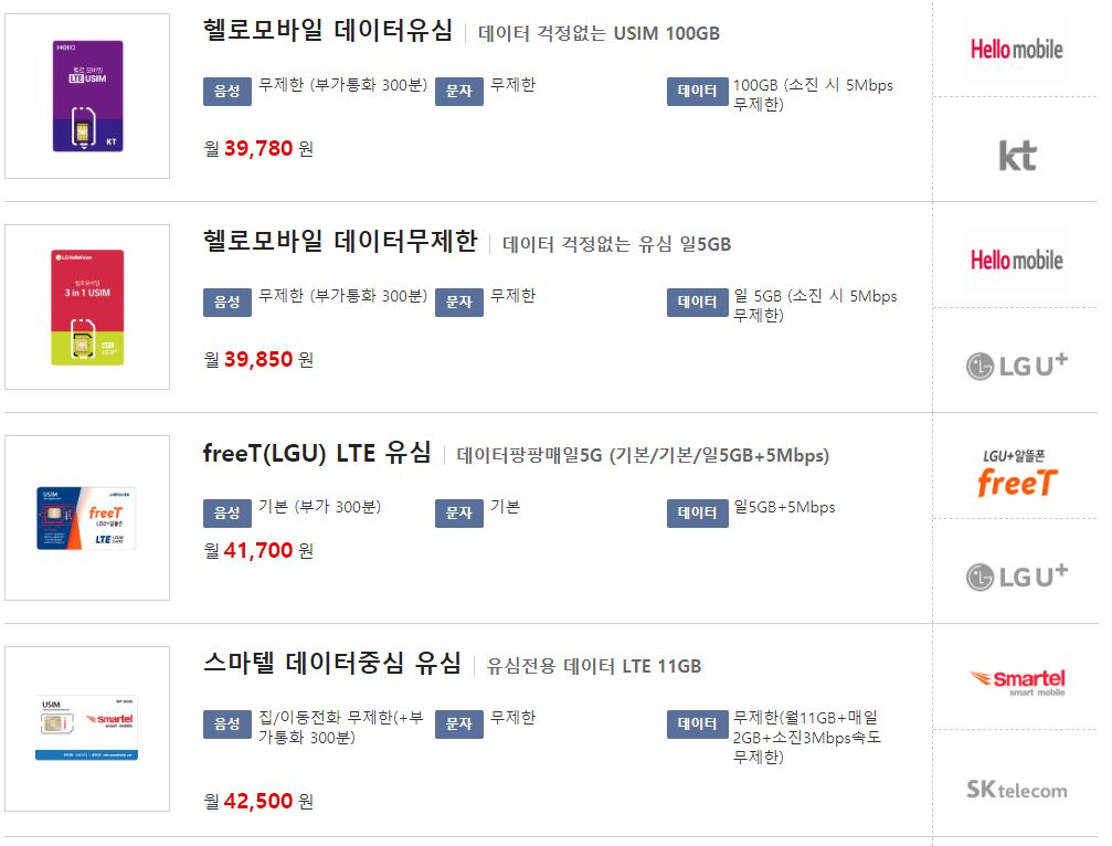 사진만 봐도 알겠지만 메이저 통신사 대비 훨~~~씬 저렴한 요금제를 자랑한다.