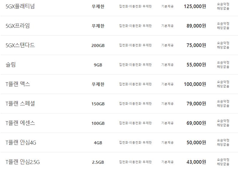 그 때문에 심지어 0원인 요금제까지 나오고 있어 사용량이 적은 사용자들은 이 기회를 노려보자.