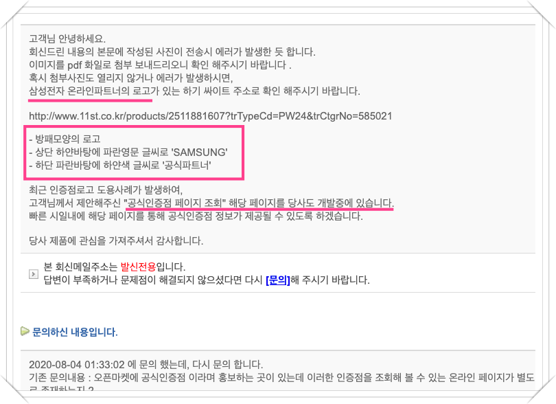 '온라인공식인증점/온라인공식파트너'라는 문구를 보고 막연하게 '신뢰'를 했다.