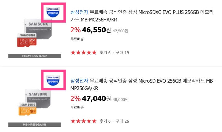 삼성전자의 경우도 '공식인증마크'를 통해 한눈에 알아 볼 수 있도록 표시가 되어 있다.